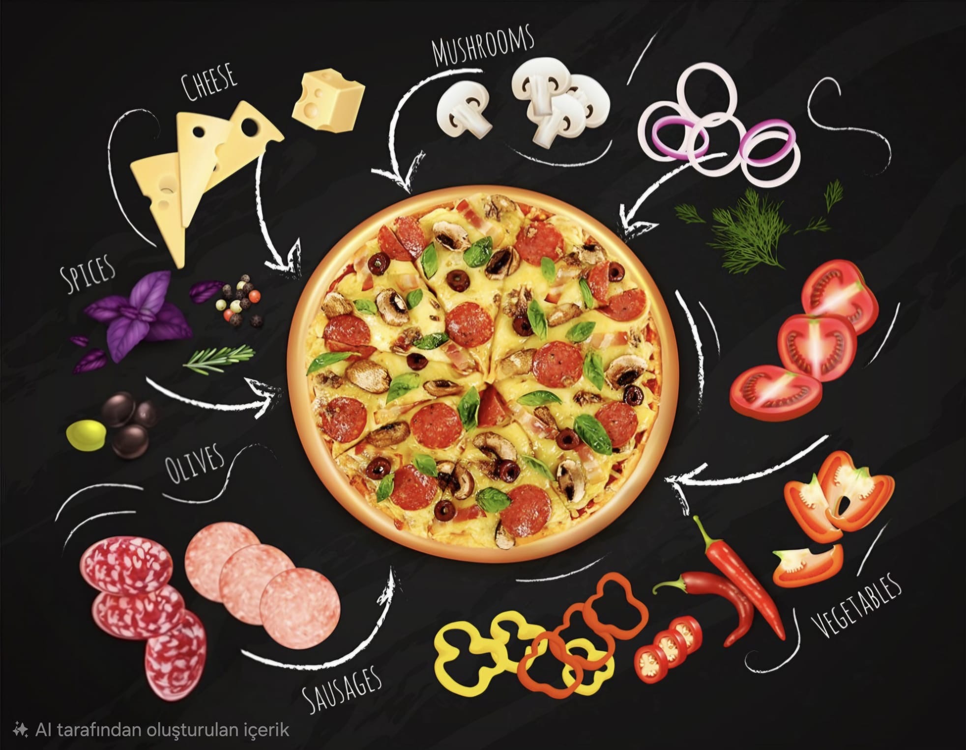 Füme kaburga eti, mozarella peyniri, roka ve parmesan peyniri ile servis edilir.